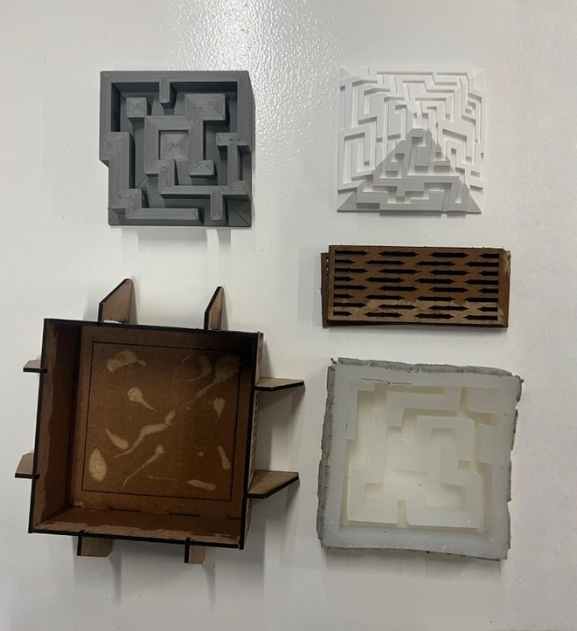 During this session, we used MDF to laser-cut the box that would later hold our silicone mold.